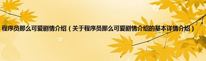 本文关于程序员那么可爱剧情介绍的基本详情介绍就讲解完毕,希望对大家有所帮助。