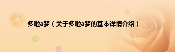本文关于多啦a梦的基本详情介绍就讲解完毕,希望对大家有所帮助。