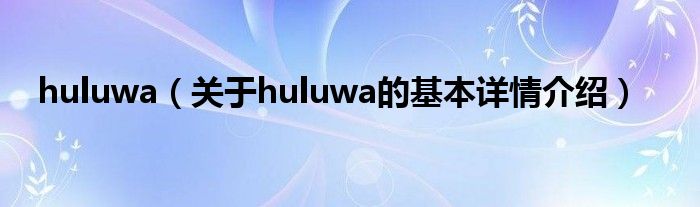 本文关于huluwa的基本详情介绍就讲解完毕,希望对大家有所帮助。