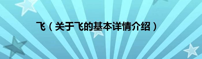 本文关于飞的基本详情介绍就讲解完毕,希望对大家有所帮助。