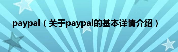 本文关于paypal的基本详情介绍就讲解完毕,希望对大家有所帮助。