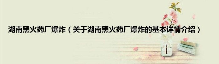 本文关于湖南黑火药厂爆炸的基本详情介绍就讲解完毕,希望对大家有所帮助。