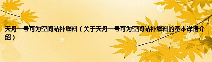 本文关于天舟一号可为空间站补燃料的基本详情介绍就讲解完毕,希望对大家有所帮助。