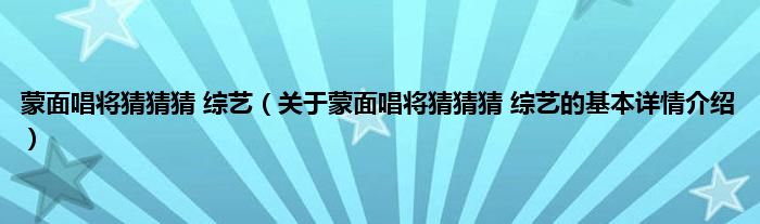 本文关于蒙面唱将猜猜猜 综艺的基本详情介绍就讲解完毕,希望对大家有所帮助。