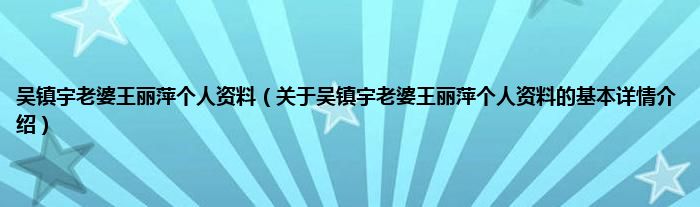 本文关于吴镇宇老婆王丽萍个人资料的基本详情介绍就讲解完毕,希望对大家有所帮助。