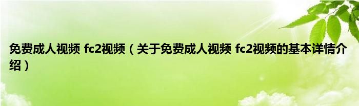 本文关于免费成人视频 fc2视频的基本详情介绍就讲解完毕,希望对大家有所帮助。