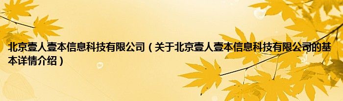 本文关于北京壹人壹本信息科技有限公司的基本详情介绍就讲解完毕,希望对大家有所帮助。