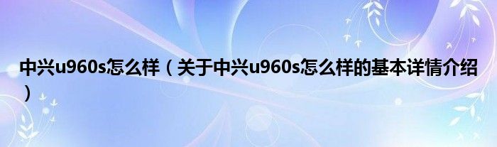中兴u960s怎么样(关于中兴u960s怎么样的基本详情介绍)
