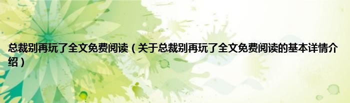 本文关于总裁别再玩了全文免费阅读的基本详情介绍就讲解完毕,希望对大家有所帮助。