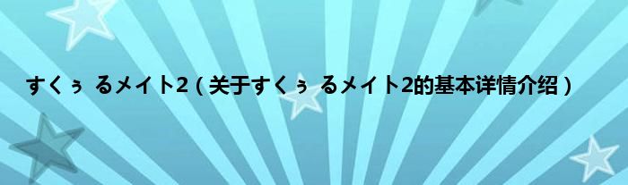 本文关于すくぅ るメイト2的基本详情介绍就讲解完毕,希望对大家有所帮助。