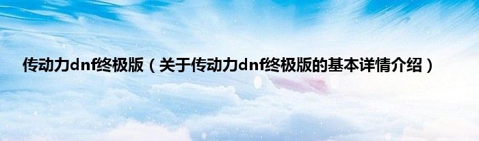 本文关于传动力dnf终极版的基本详情介绍就讲解完毕,希望对大家有所帮助。