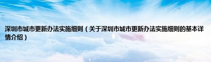 本文关于深圳市城市更新办法实施细则的基本详情介绍就讲解完毕,希望对大家有所帮助。