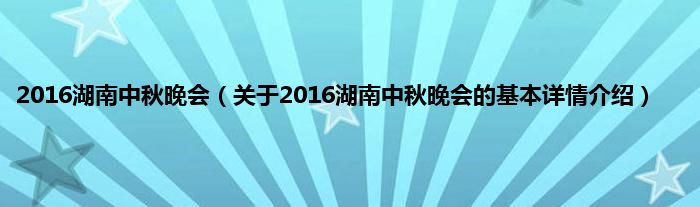 2016湖南中秋晚会(关于2016湖南中秋晚会的基本详情介绍)