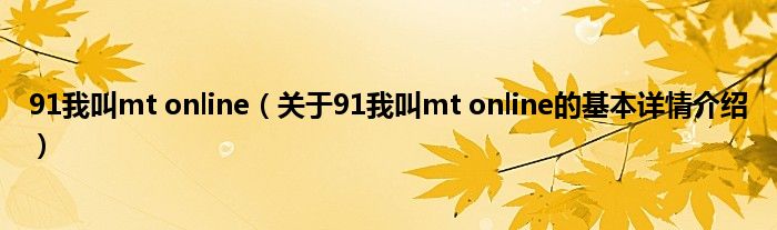 本文关于91我叫mt online的基本详情介绍就讲解完毕,希望对大家有所帮助。