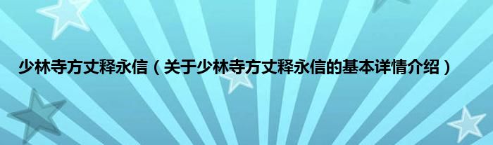 本文关于少林寺方丈释永信的基本详情介绍就讲解完毕,希望对大家有所帮助。