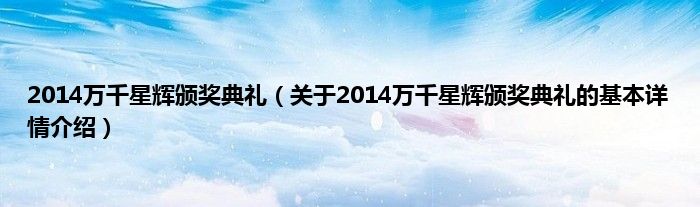 本文关于2014万千星辉颁奖典礼的基本详情介绍就讲解完毕,希望对大家有所帮助。