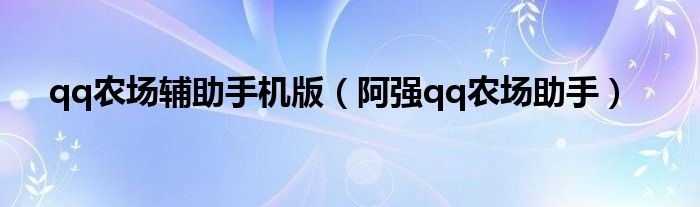 大家好,小问来为大家解答以上问题。qq农场辅助手机版,阿强qq农场助手这个很多人还不知道,现在让我们一起来看看吧!