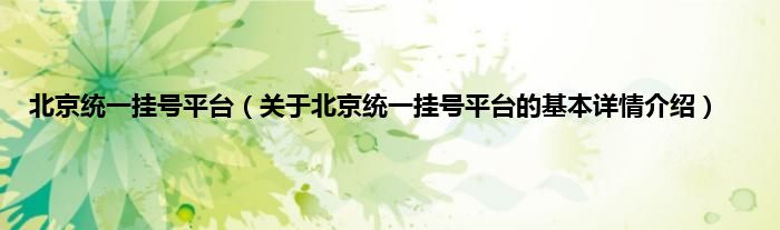 本文关于北京统一挂号平台的基本详情介绍就讲解完毕,希望对大家有所帮助。