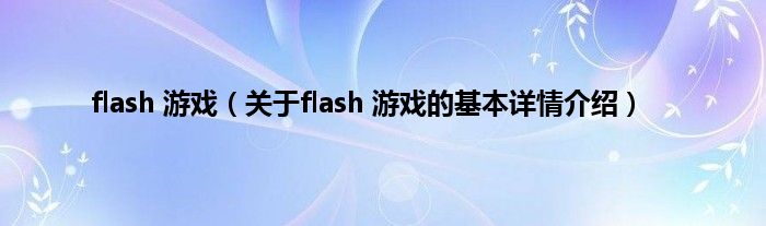 本文关于flash 游戏的基本详情介绍就讲解完毕,希望对大家有所帮助。