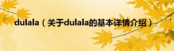 本文关于dulala的基本详情介绍就讲解完毕,希望对大家有所帮助。