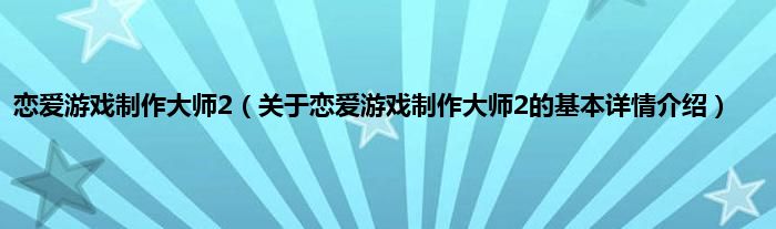 本文关于恋爱游戏制作大师2的基本详情介绍就讲解完毕,希望对大家有所帮助。