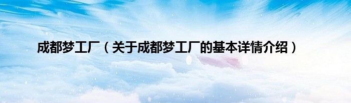 本文关于成都梦工厂的基本详情介绍就讲解完毕,希望对大家有所帮助。