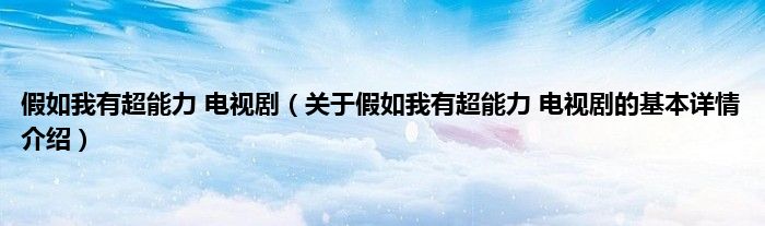 本文关于假如我有超能力 电视剧的基本详情介绍就讲解完毕,希望对大家有所帮助。