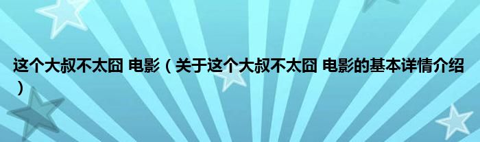 本文关于这个大叔不太囧 电影的基本详情介绍就讲解完毕,希望对大家有所帮助。