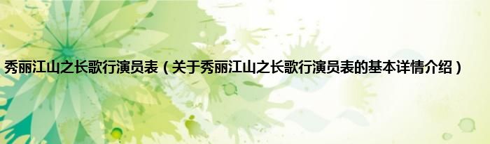 本文关于秀丽江山之长歌行演员表的基本详情介绍就讲解完毕,希望对大家有所帮助。
