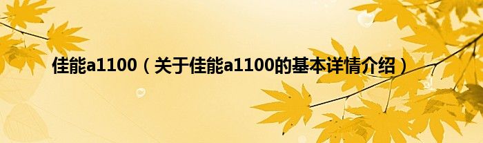 本文关于佳能a1100的基本详情介绍就讲解完毕,希望对大家有所帮助。