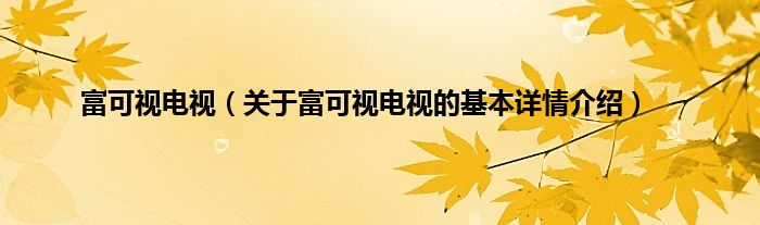 本文关于富可视电视的基本详情介绍就讲解完毕,希望对大家有所帮助。