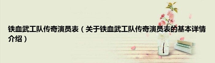 本文关于铁血武工队传奇演员表的基本详情介绍就讲解完毕,希望对大家有所帮助。
