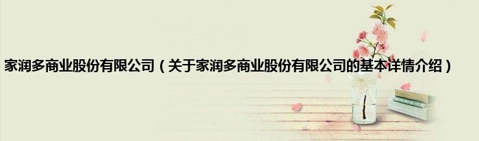 本文关于家润多商业股份有限公司的基本详情介绍就讲解完毕,希望对大家有所帮助。
