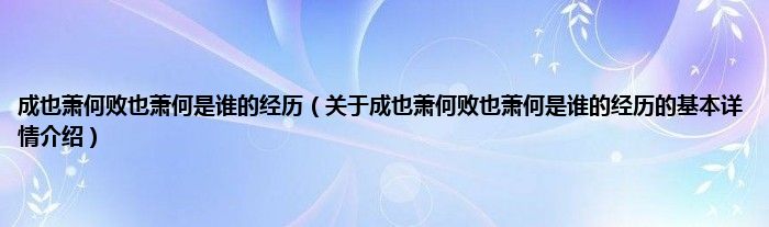 本文关于成也萧何败也萧何是谁的经历的基本详情介绍就讲解完毕,希望对大家有所帮助。
