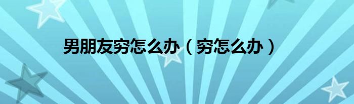 大家好,小问来为大家解答以上问题。男朋友穷怎么办,穷怎么办这个很多人还不知道,现在让我们一起来看看吧!