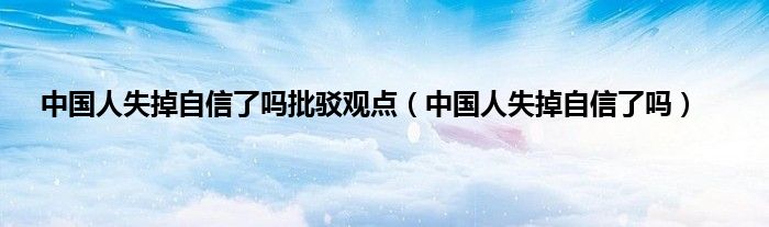 大家好,小问来为大家解答以上问题。中国人失掉自信了吗批驳观点,中国人失掉自信了吗这个很多人还不知道,现在让我们一起来看看吧!