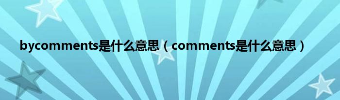 大家好,小问来为大家解答以上问题。bycomments是什么意思,comments是什么意思这个很多人还不知道,现在让我们一起来看看吧!