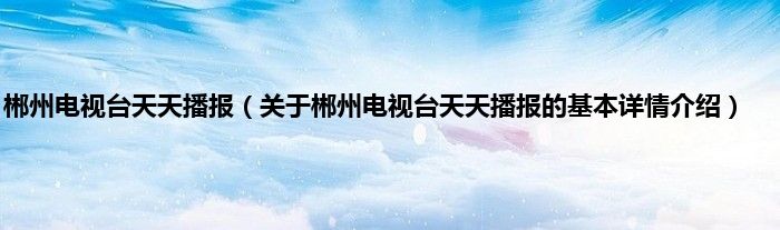 本文关于郴州电视台天天播报的基本详情介绍就讲解完毕,希望对大家有所帮助。