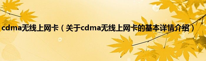 本文关于cdma无线上网卡的基本详情介绍就讲解完毕,希望对大家有所帮助。