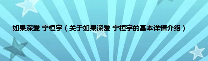 如果深爱 宁桓宇(关于如果深爱 宁桓宇的基本详情介绍)