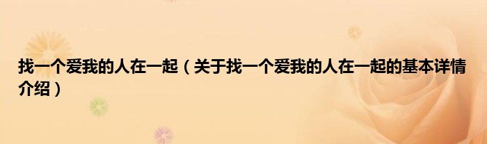 本文关于找一个爱我的人在一起的基本详情介绍就讲解完毕,希望对大家有所帮助。