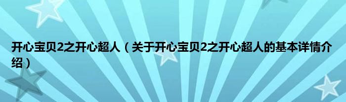 本文关于开心宝贝2之开心超人的基本详情介绍就讲解完毕,希望对大家有所帮助。