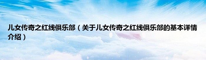 本文关于儿女传奇之红线俱乐部的基本详情介绍就讲解完毕,希望对大家有所帮助。