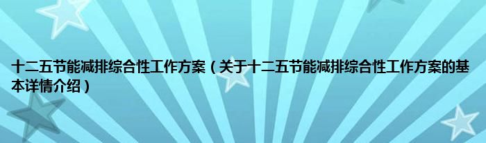 本文关于十二五节能减排综合性工作方案的基本详情介绍就讲解完毕,希望对大家有所帮助。
