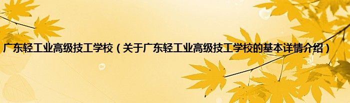 本文关于广东轻工业高级技工学校的基本详情介绍就讲解完毕,希望对大家有所帮助。