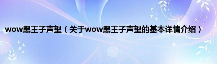 本文关于wow黑王子声望的基本详情介绍就讲解完毕,希望对大家有所帮助。