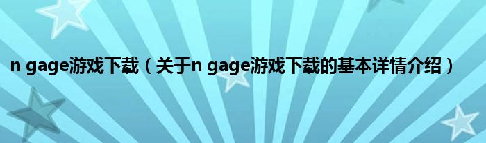 本文关于n gage游戏下载的基本详情介绍就讲解完毕,希望对大家有所帮助。