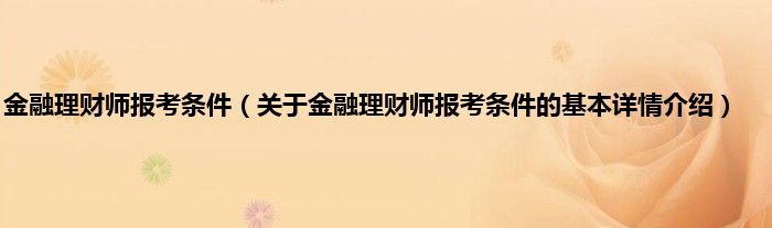 本文关于金融理财师报考条件的基本详情介绍就讲解完毕,希望对大家有所帮助。