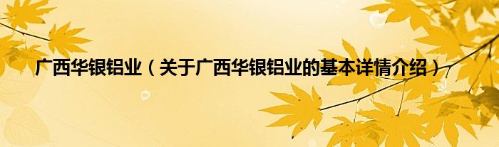 本文关于广西华银铝业的基本详情介绍就讲解完毕,希望对大家有所帮助。