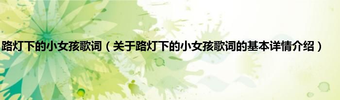 本文关于路灯下的小女孩歌词的基本详情介绍就讲解完毕,希望对大家有所帮助。